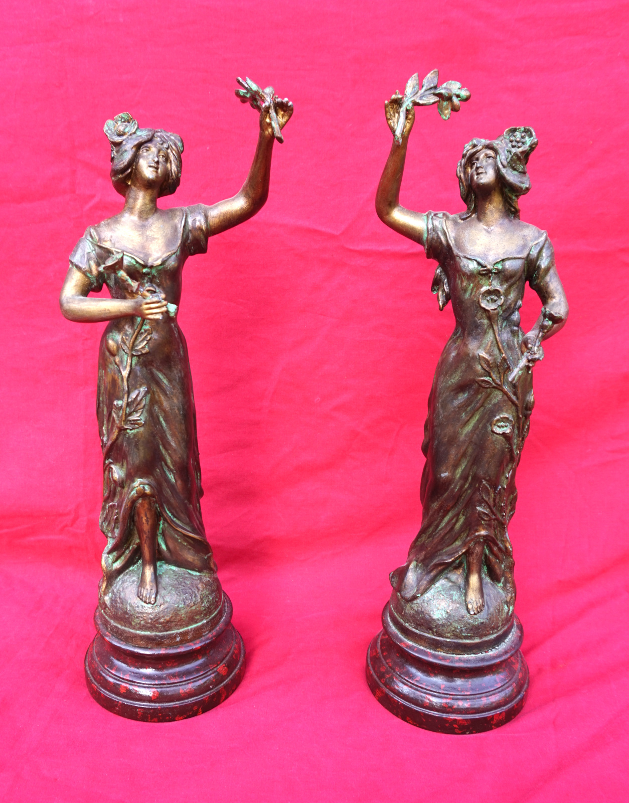 Art Nouveau Flora Ladies Spelter Pair Figure Ch Ruchot Paris