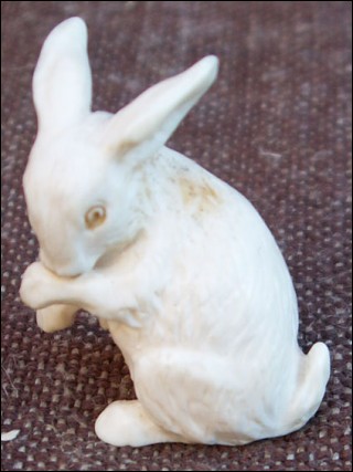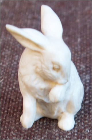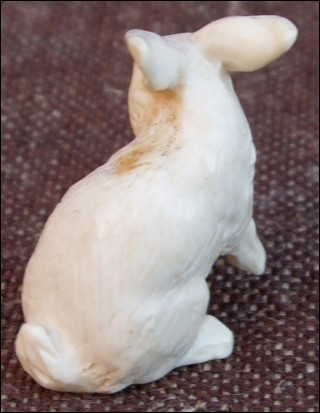 German rabbit carved figure ivory made by DV craftsman. 1 1/4" high. Signed on the back DV. Perfect condition.