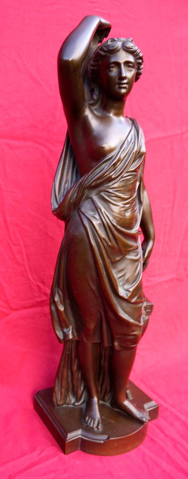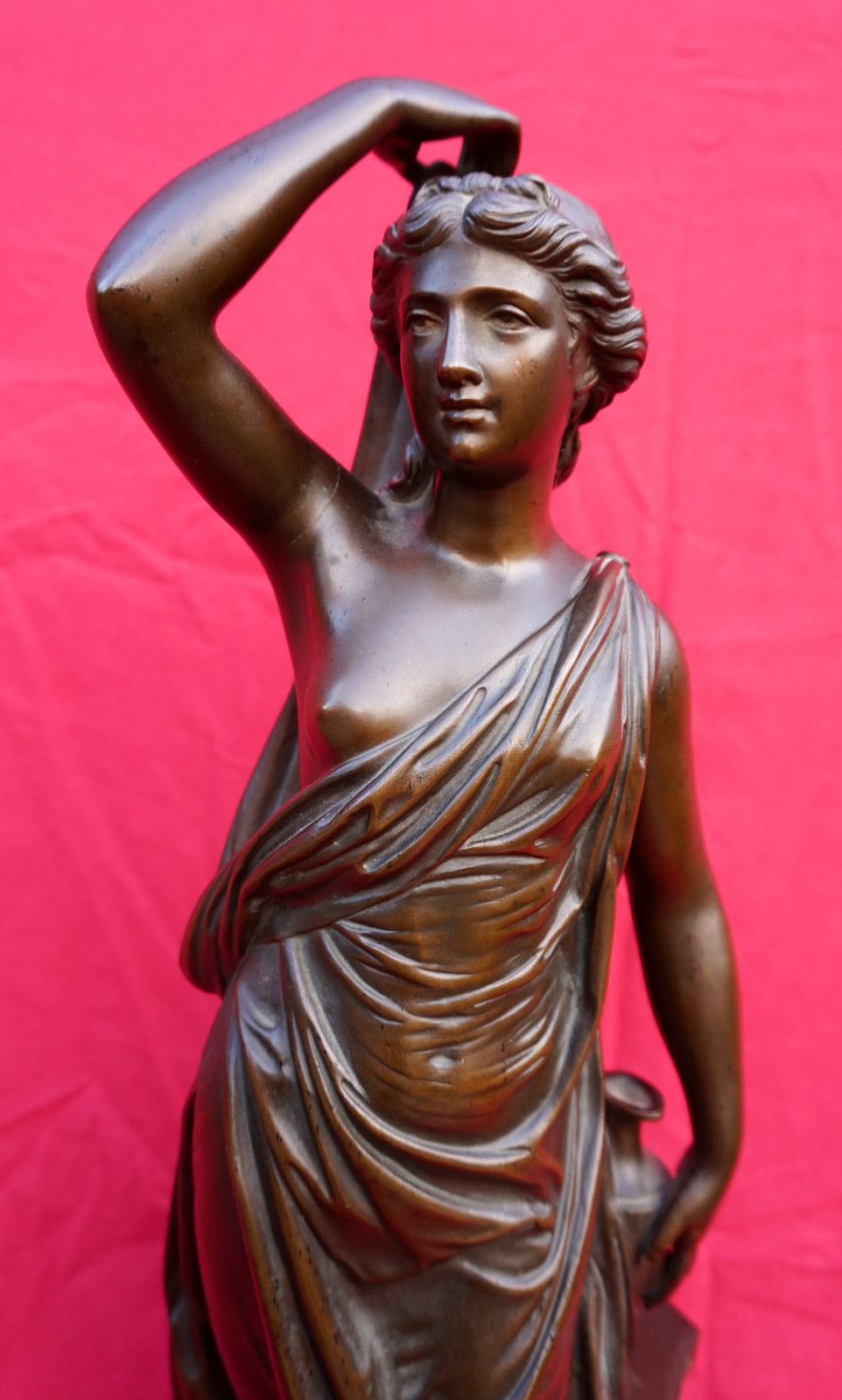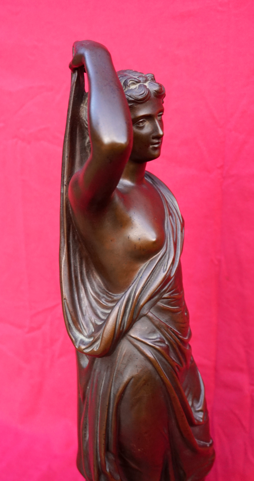 Vénus sortant du bain, grande bronze à l'antique par la Société des Bronzes début XX° siècle. SInature sur le socle. Hauteur 56.5 cm, largeur 16.7 cm, profondeur 13.5 cm, poids 10.216 kg. Très bel état.