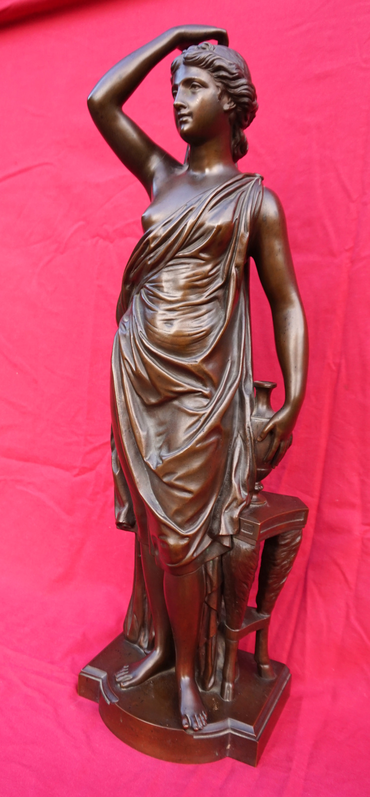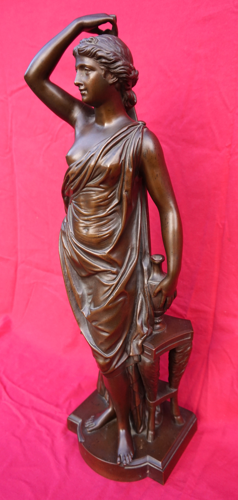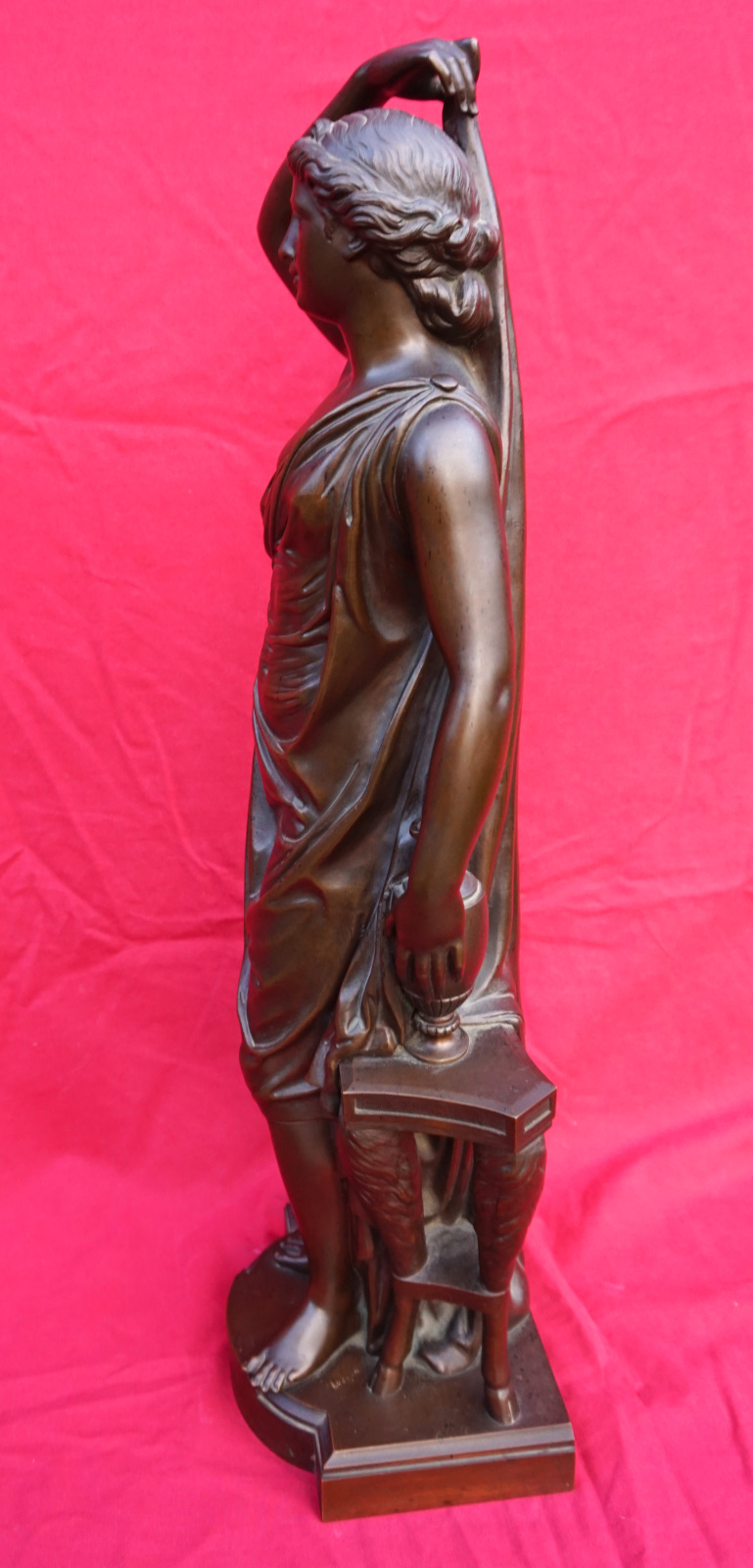 Vénus sortant du bain, grande bronze à l'antique par la Société des Bronzes début XX° siècle. SInature sur le socle. Hauteur 56.5 cm, largeur 16.7 cm, profondeur 13.5 cm, poids 10.216 kg. Très bel état.