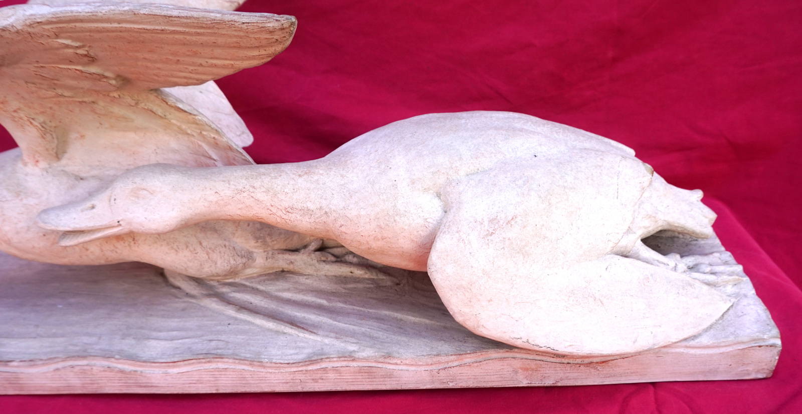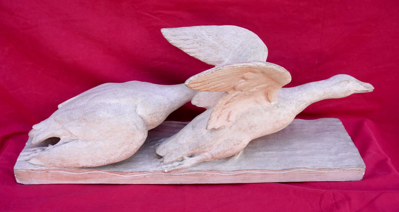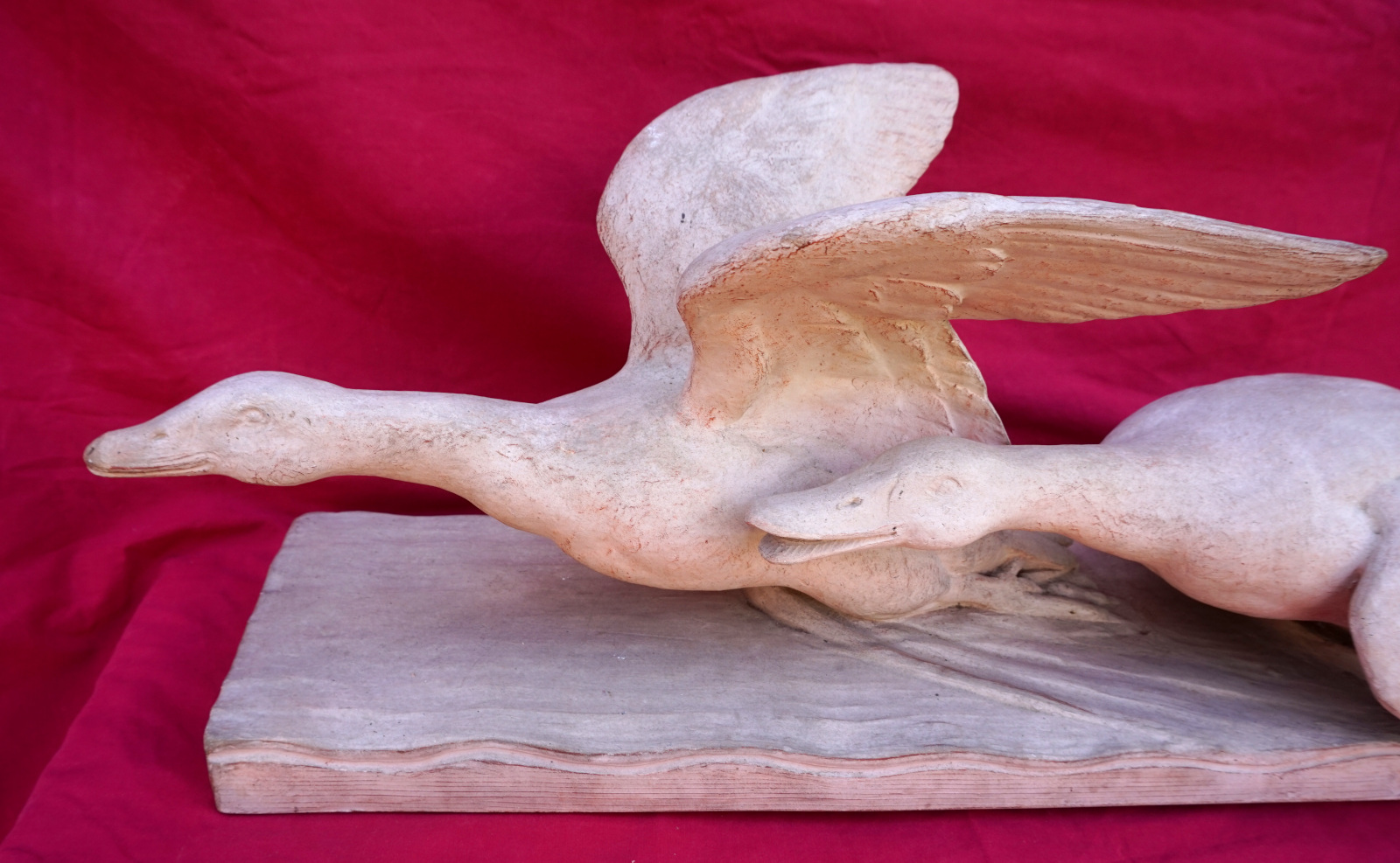 Art Deco Duck flight sculpture in terracotta by Henri Bargas