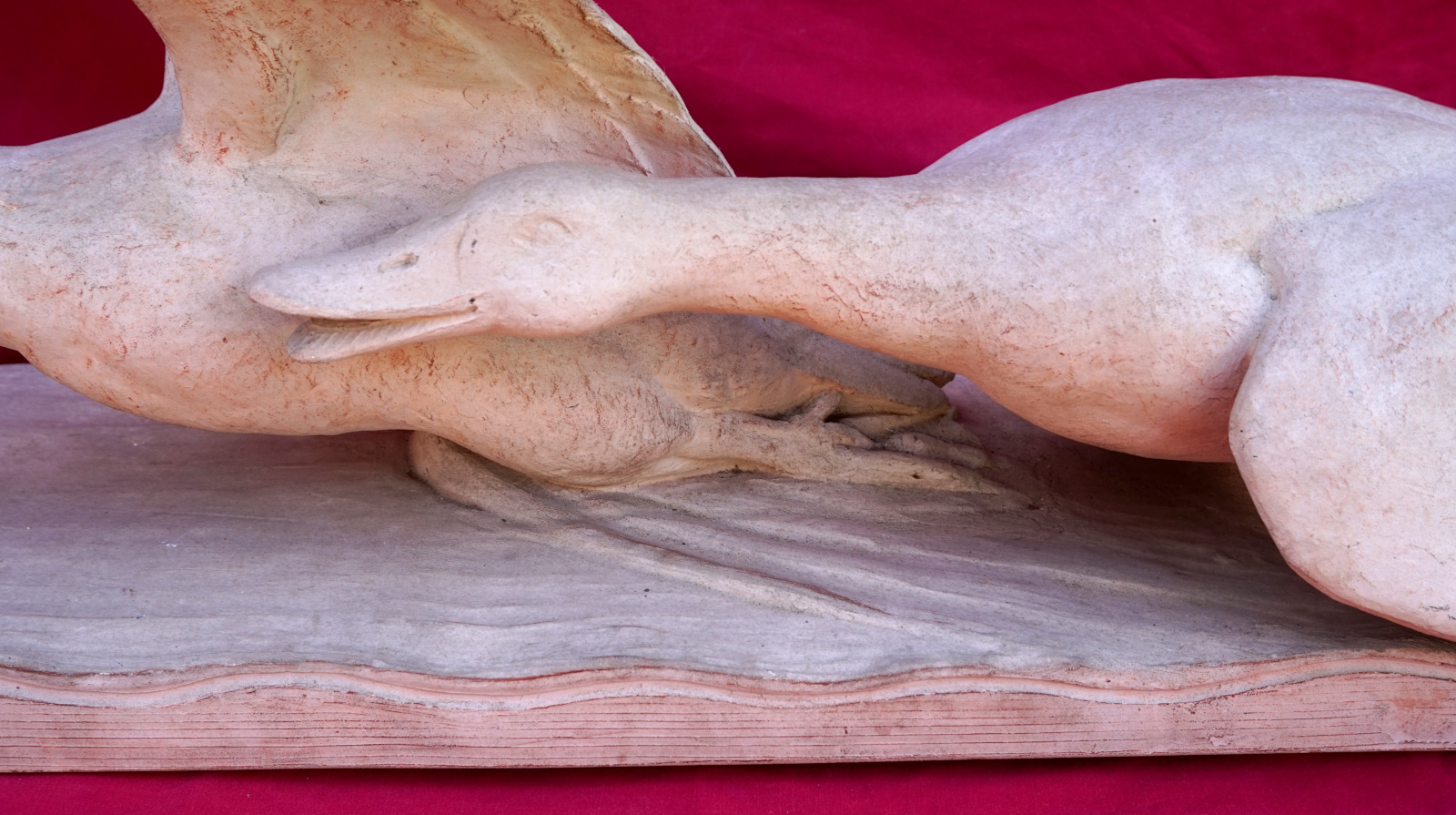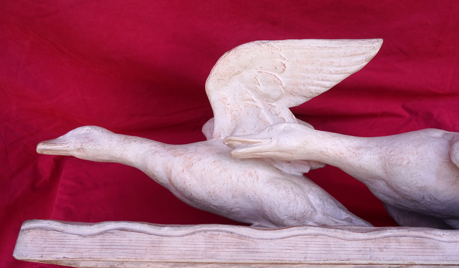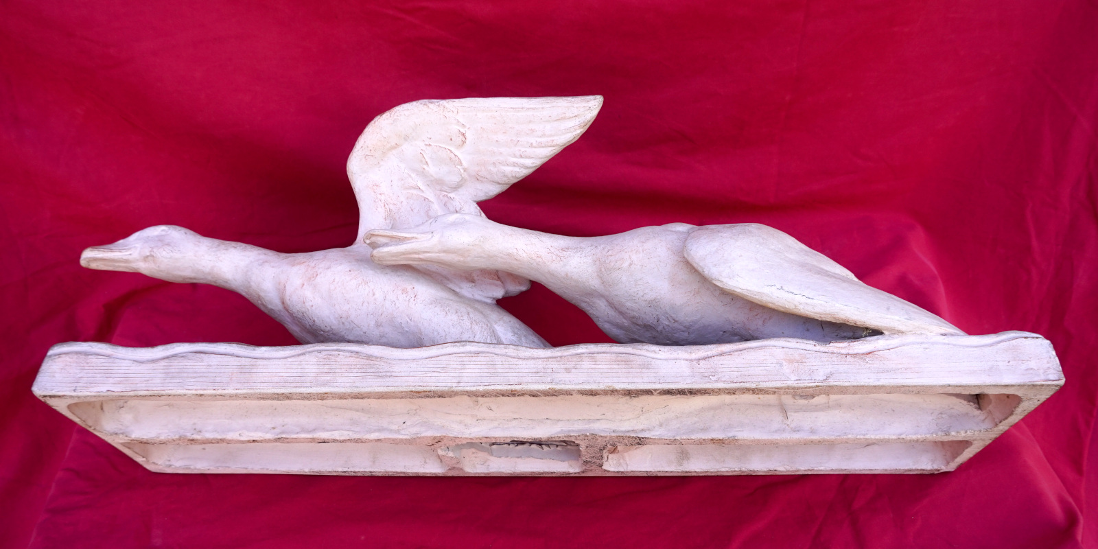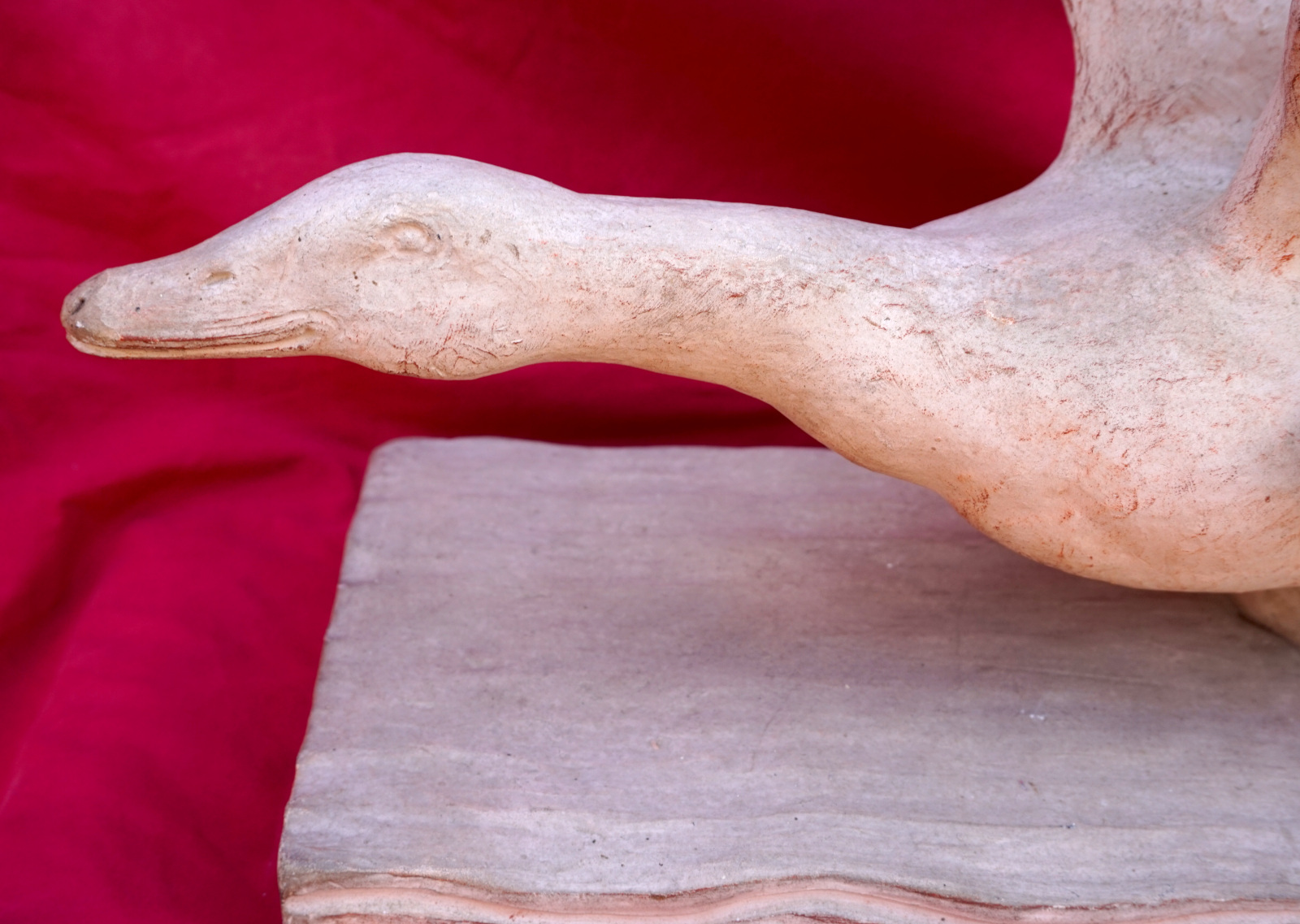 Art Deco Duck flight sculpture in terracotta by Henri Bargas