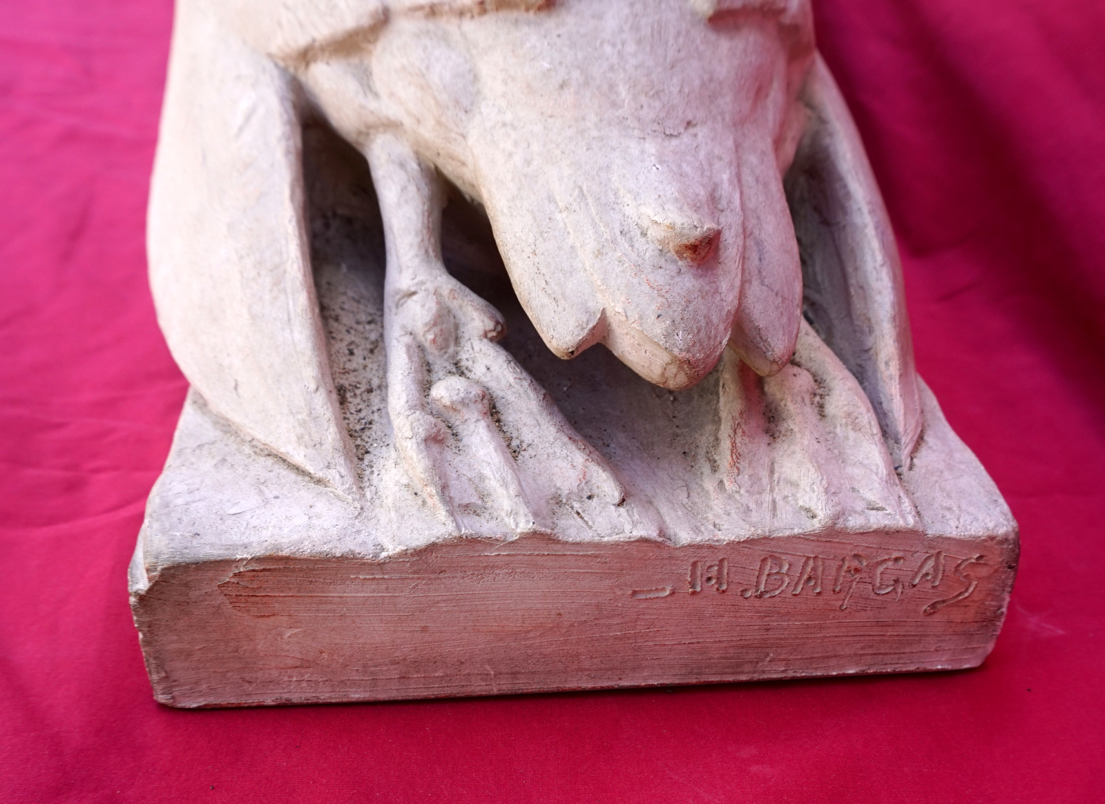 French Art Deco Duck flight sculpture in terracotta by Henri Bargas born in Paris made during the 1930's. It's signed on the base. 25 3/4" (65.5cm) length, 6 3/4" (17cm) width, 10 1/4" (26cm) height, weight 19.8 lbs (9 kilograms). Perfect condition no chips, no cracks , no damages as shown by the following pictures.