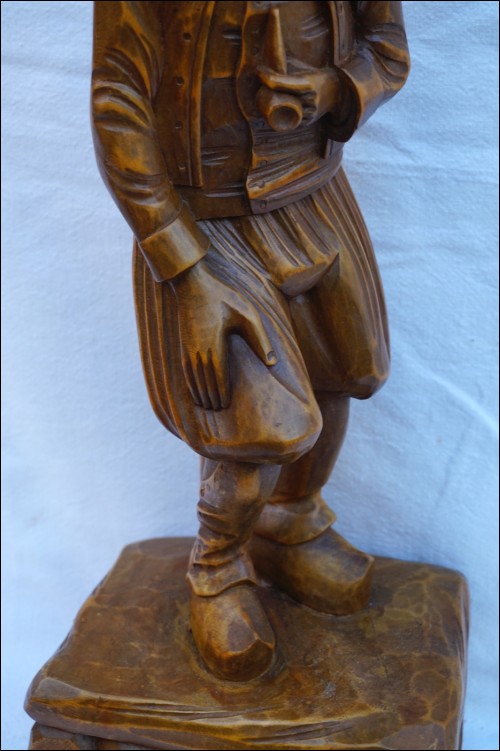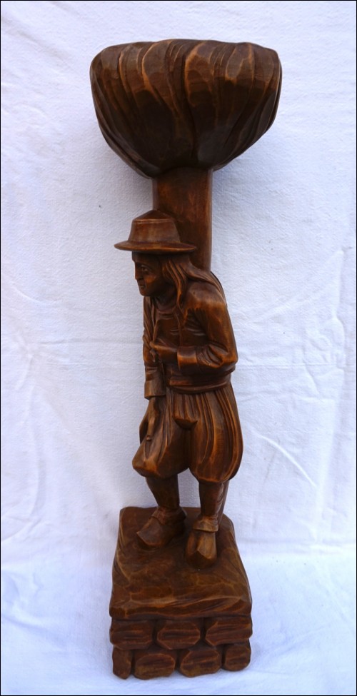 Breton fumant sa pipe, sculpture supportant un porte pipe. Hauteur 60 cm, pour le pied 16.5 cm x 14.5 cm. Très bel état.