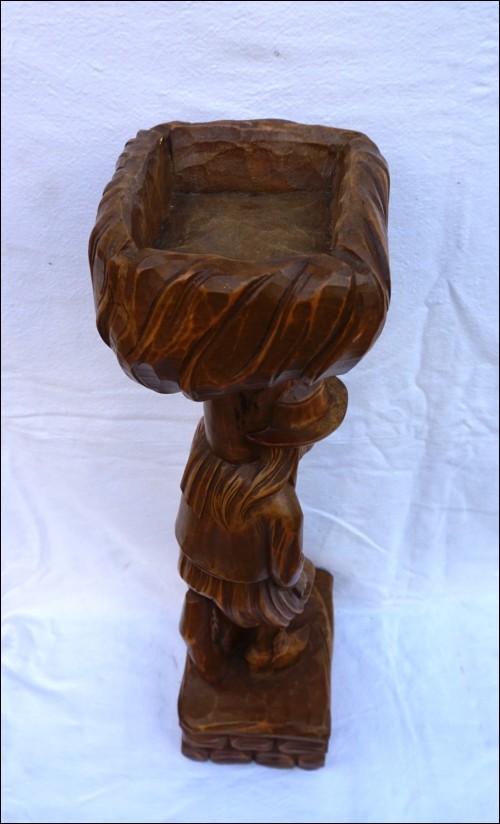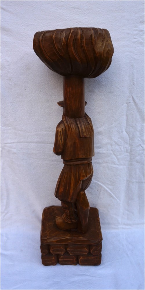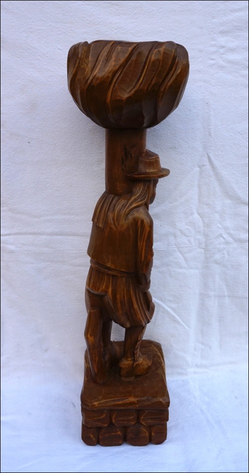 Breton smoking pipe stand figural hand carved wood made near Quimper during the mid-century. 23 1/2" (60cm) height, 6 1/2" (16.5cm) by 5 3/4" (14.5cm) for the base. Perfect condition as shown by the following pictures.