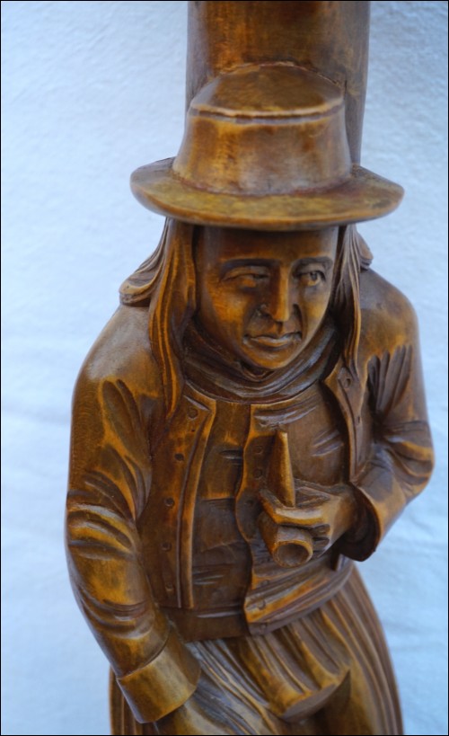 Breton Smoking Pipe Hand Carved Wood Statue Figue Stand End Table Quimper