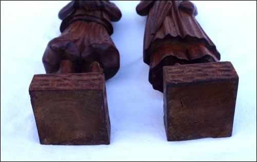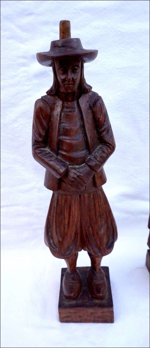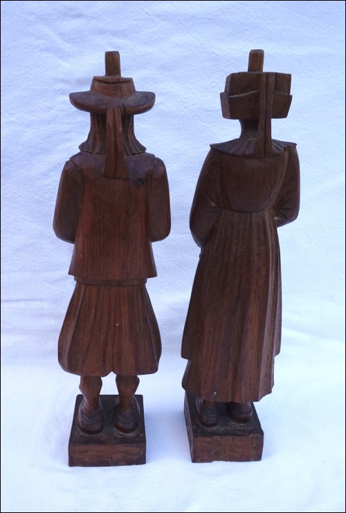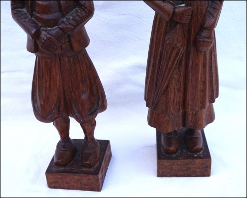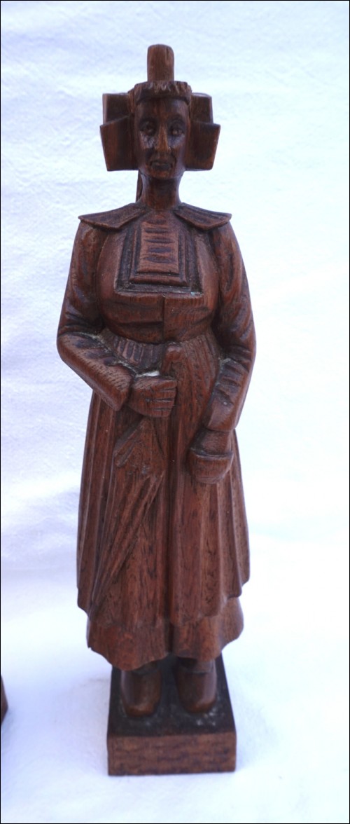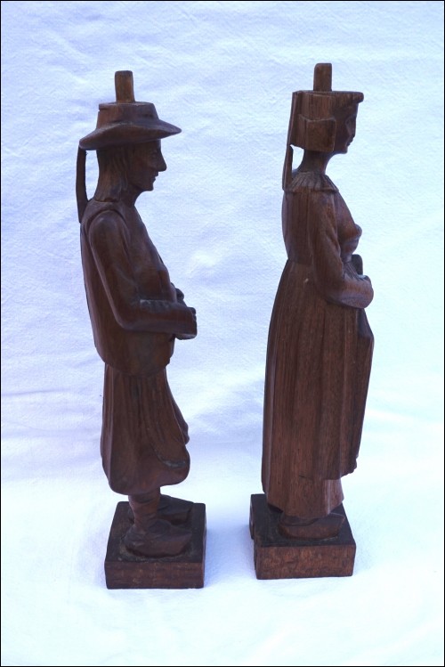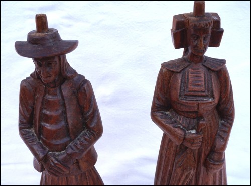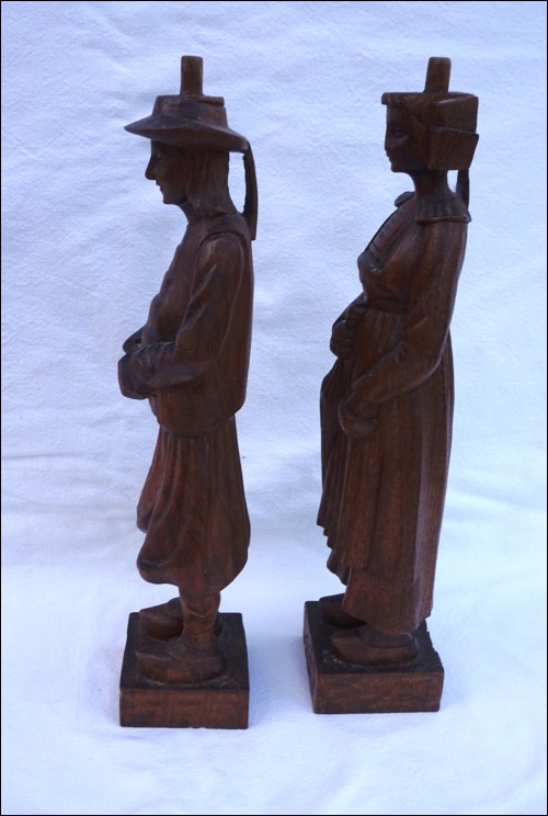 Couple of Breton Quimper Hand Wood Carved Figures Brittany 1950's