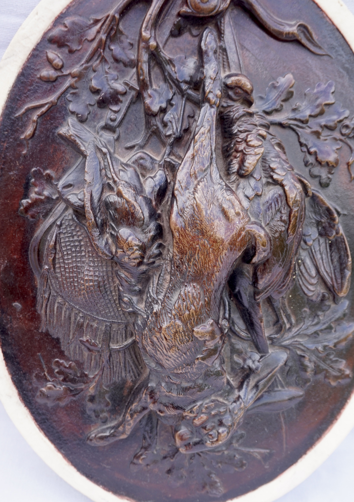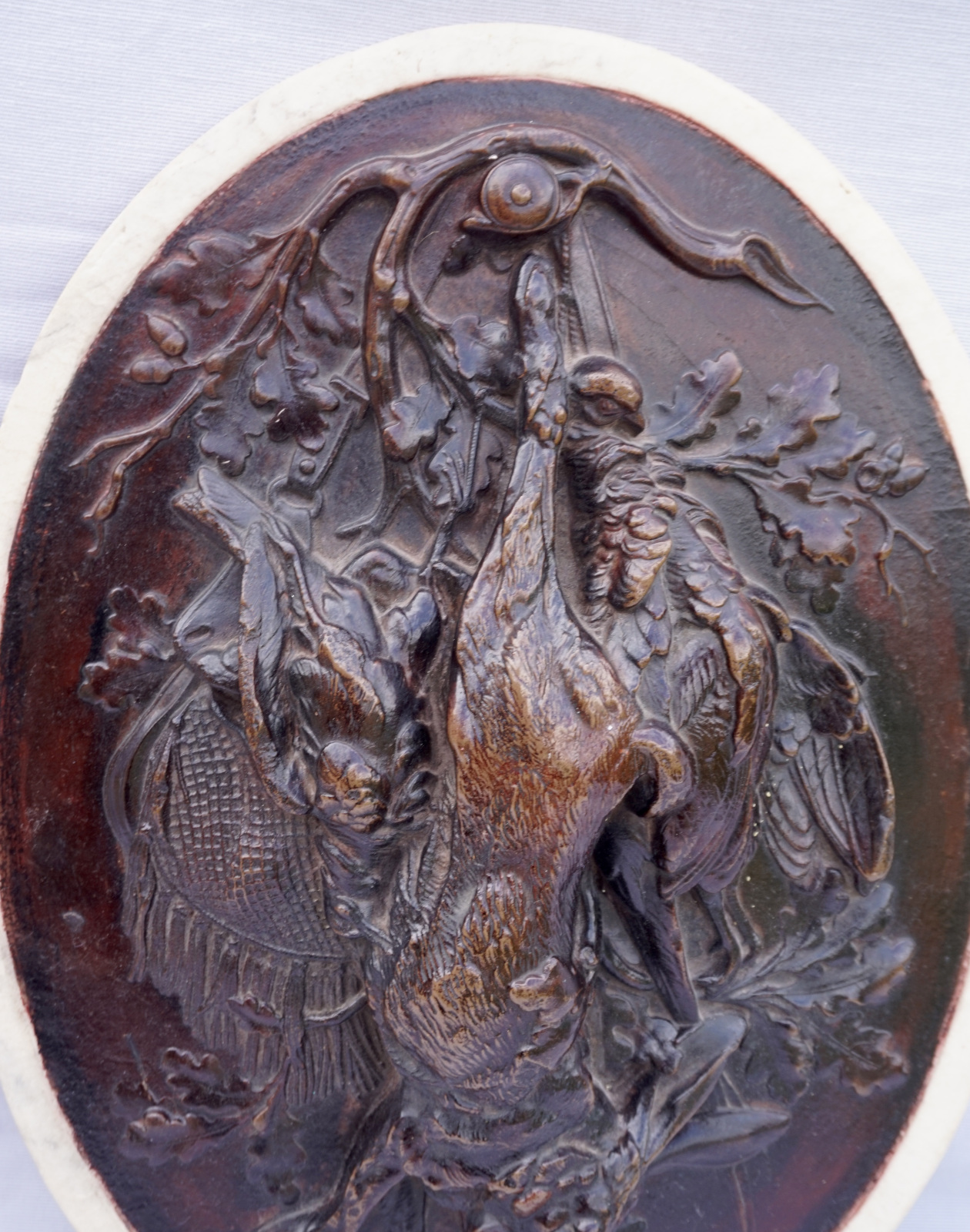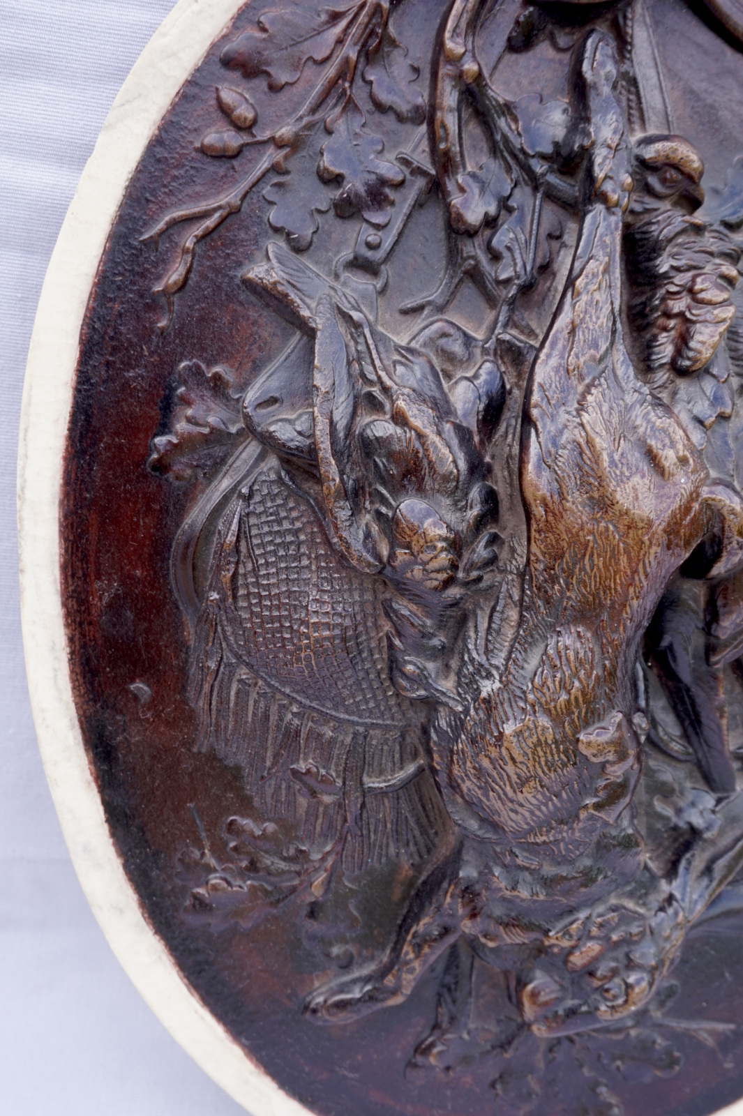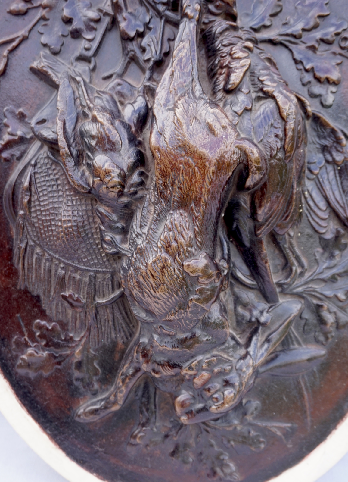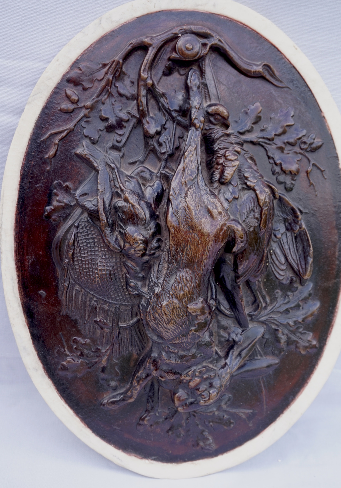 Hunting Trophy Wall Panel Bronze Hare Pheasant Partridge Bag Medal Marble late 19th C