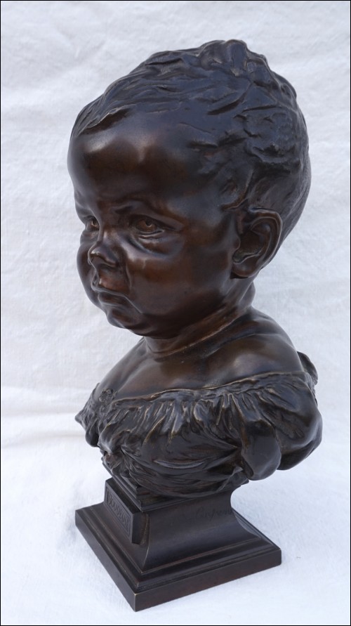 Authentic Sulky Child " Boudeur" bronze sculpture, with beautiful chocolate patina, by Jean Baptiste Carpeaux (1827 ? 1875) made in France late 19th century. It's signed J Carpeaux on the side with Boudeur in front. 11 7/16" height.The bronze comes with appraizer certificat and invoice.Perfect condition as presented on the following pictures.