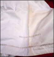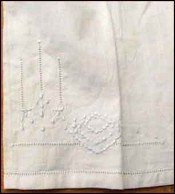 Embroidered Bed Sheet Ladder Work Mono CD White Cotton 114" x 82 1/2"