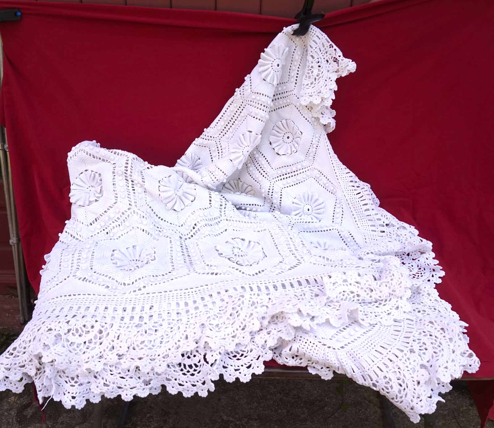 Huge Old Table Cloth Richelieu Cutwork and Lace