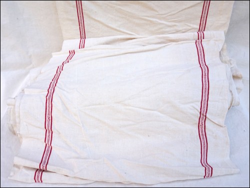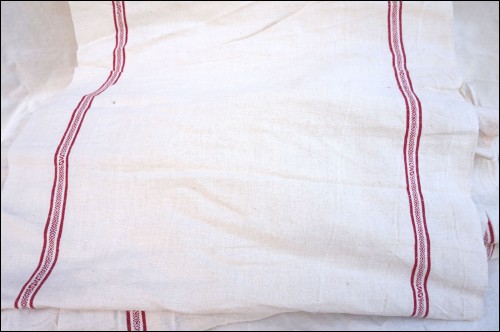 19 Yards Red Striped Linen Fabric Toweling Towel Washed Uncut