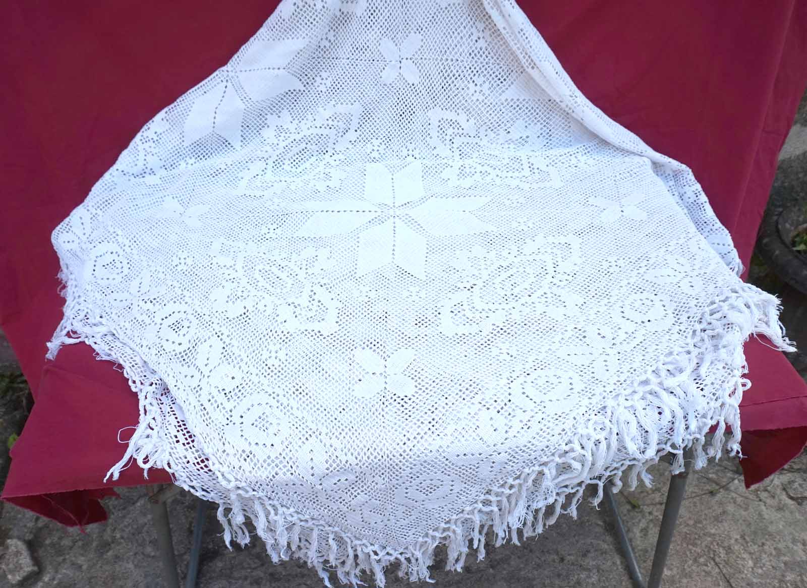 French Hand-Made Knit Off-White Cotton Bed Cover Coverlet 94x72 inches