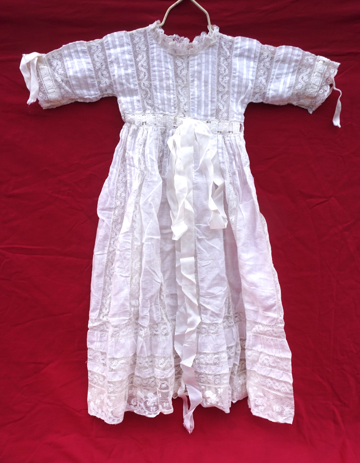 Baby Christening Dress Gown Baptism Embroidery Short Sleeve 1900's 8"