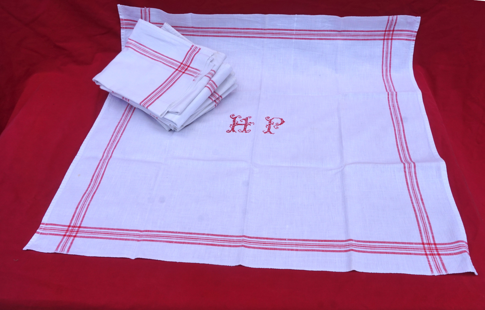 Linen Set of 8 Tea Towels HP Mono Red Stripe 1930's