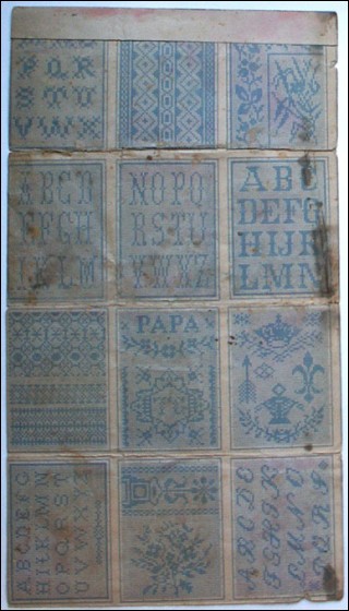 French ABC's design sampler Animals Flowers Cross Stitch pattern 2 leaves printed during the 1880's. Good condition. 12 5/8" by 7" by sheet. Print double-sided.