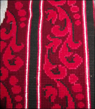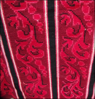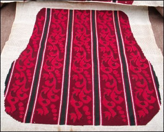Tapisserie de fauteuil aux petis points , jamais posé. Dimensions des parties tapissées: pour le dossier: hauteur 54 cm, largeur 51 cm: pour l'assise: hauteur 51 cm, largeur 52 cm.