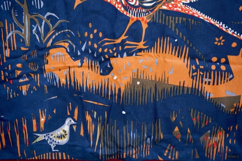 Tapisserie imprimée "Camargue II" par A Miniaux pour les éditions Brain & Cie Paris. Elle est signée en bas et au dos, numérotée 149/200. Largeur 118 cm, hauteur 164.5 cm. Très bel état.