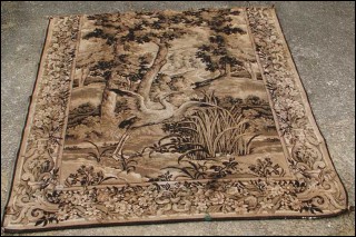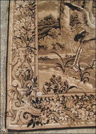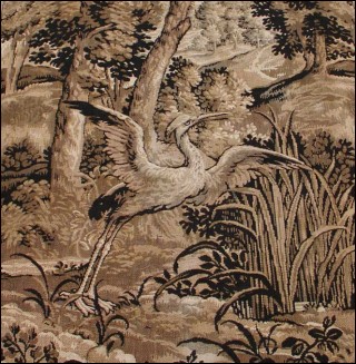 Partie de tapisserie des Flandres "Le Héron" sur métier Jacquard, vers 1920. Hauteur 123 cm, largeur 142 cm.