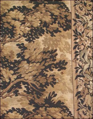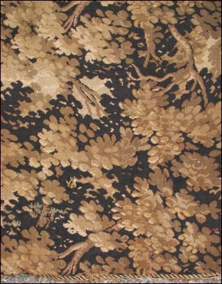 Partie de tapisserie "Feuillage" sur métier Jacquard, vers 1920. Bon état malgré quelques trous. Hauteur 123 cm, largeur 134 cm.