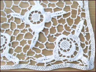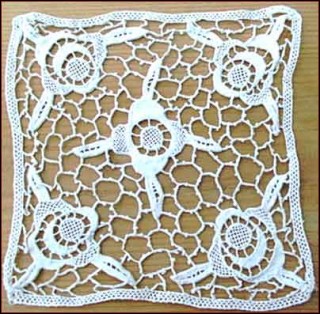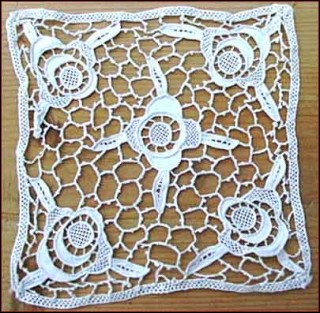 From France, this bobbin lace has been made around 1900. It measures 6"1/4 by 6"1/4. Perfect condition no rip or no thread missing.