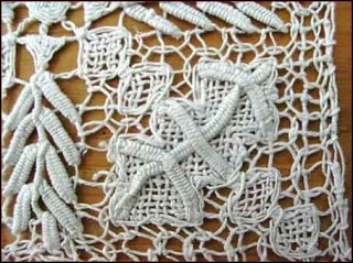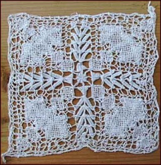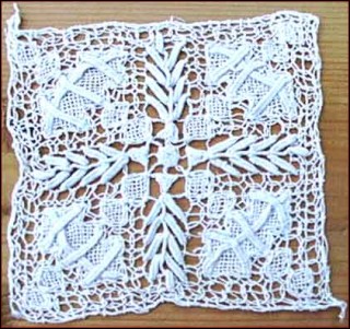 From France, this bobbin lace has been made around 1900. It measures 5"1/2 by 5"1/2. Perfect condition.