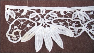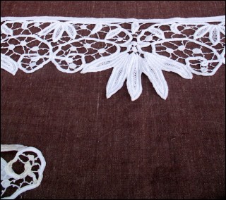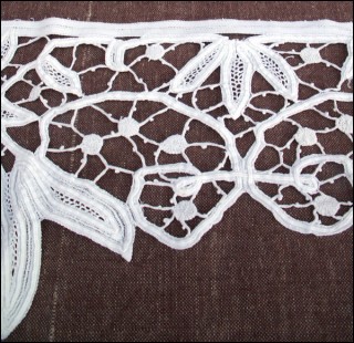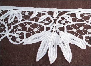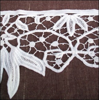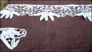 French cut lace pelmet curtain for window or shelf made during the 1900's. Good condition. 7' 3" (220cm) length 8"1/4 width.