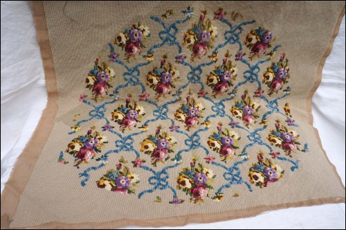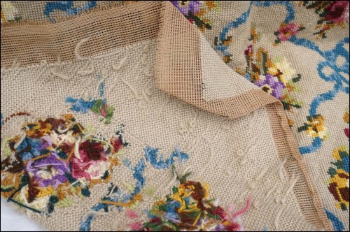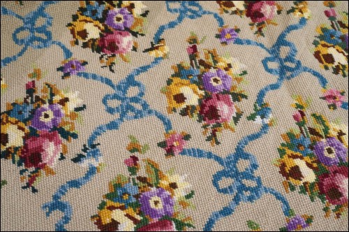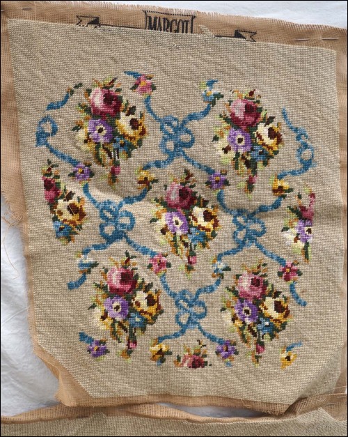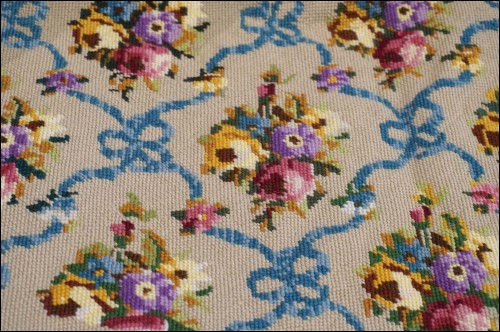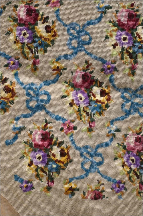 French Finished Needlepoint Tapestry Armchair Flower Ribbon