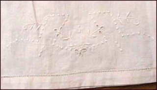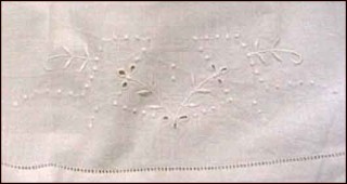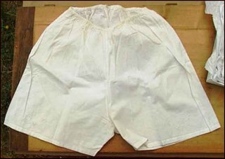 From France, this panties in white cotton has been made around 1925 Art Deco period. The embroidered pattern shows Art Deco flowers. Perfect condition. 17"7/8 tall 13" width.