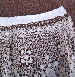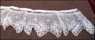 French lace pelmet curtain for window or shelf made during the 1900's. Good condition. 44" length 8"1/4 width.