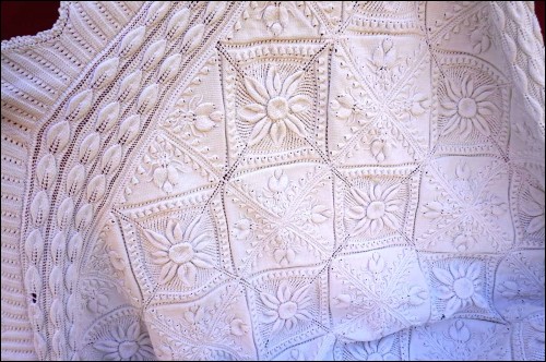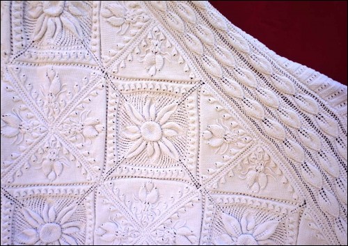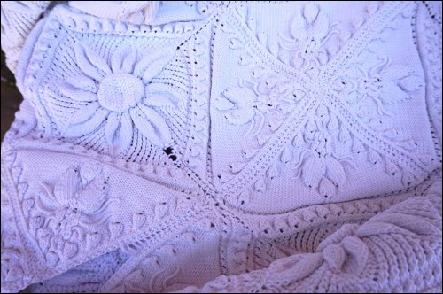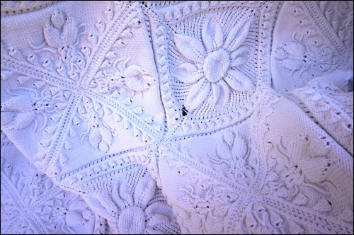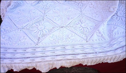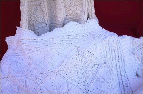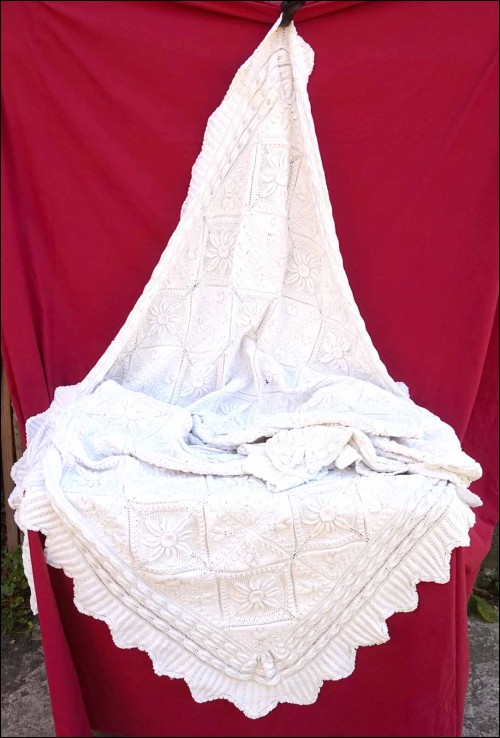 Hand-Made Knit Off-White Cotton Bed Cover Coverlet 76