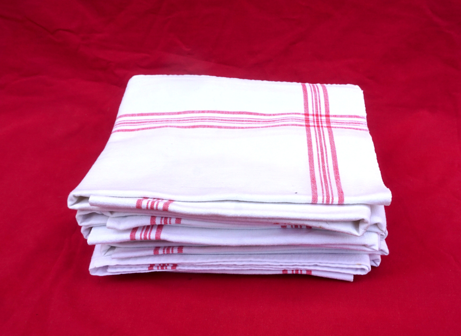 Linen Set of 8 Tea Towels HP Mono Red Stripe 1930's
