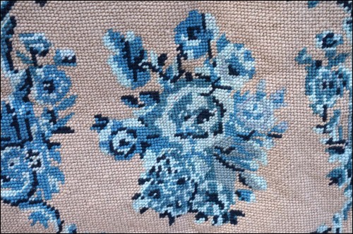 Needlepoint Tapestry Chair Pillow Cover Blue Flowers Garlands