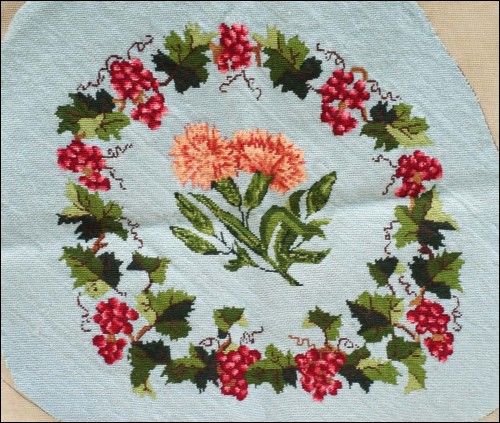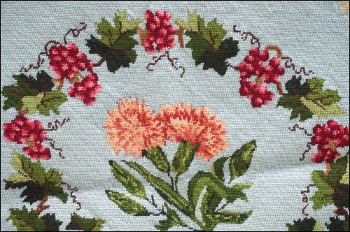 Needlepoint Tapestry Chair Pillow Cover Grapes Flowers