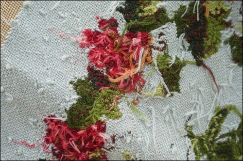 Bouquet et grappes de raisin tapisserie, pure laine, pour siège ou coussin entièrement fait main sur une toile en coton. Dimensions du travail 56,5 cm par 52cm, dimensions du canevas 63 cm x 63 cm.