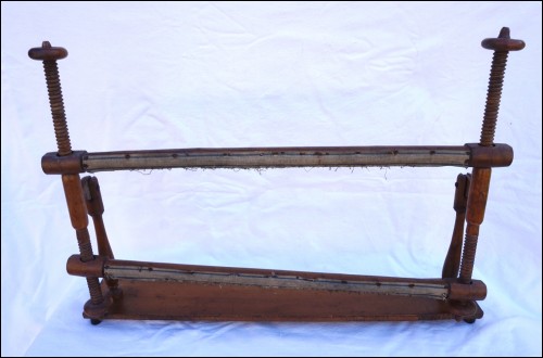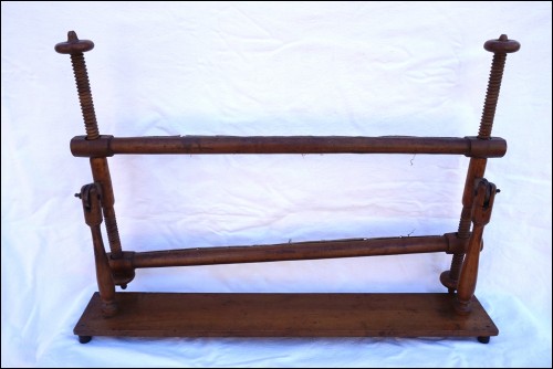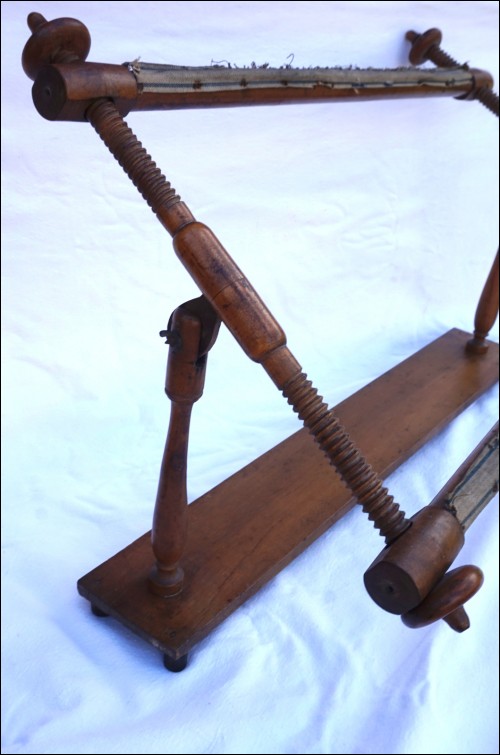 Métier à tapisser ou broder de table n bois de noyer vers 1900. Hauteur totale 47 cm, largeur 67 cm. Très bel état.