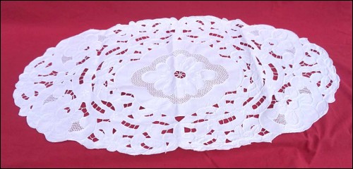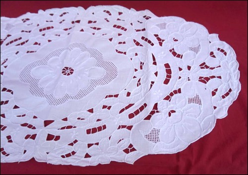 Oval Table Runner Centerpiece Embroidered Cutwork Flower 29