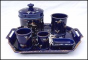 Faience Bee Cobalt Blue Smoker Tobacco Set Luneville 1880
