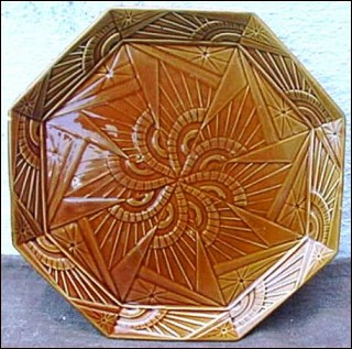 Vintage Art Deco tobacco set in French majolica made by the famous Onnaing factory around 1930-35. The 4 pots are signed on the bottom Onnaing Made in France. Good condition only the tobacco pot with lid have one chip on the edge and one repair on the lid as you can see on the last pictures below. Dimensions for the tray 10⅝" with and for the pot with lid 4¾" high 4" width