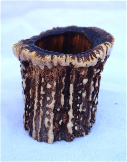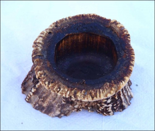 Partie de corne de cerf, porte pipe cendrier, vers 1950. Longueur 11cm, largeur 8cm, hauteur 6.5cm. Bel état.