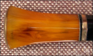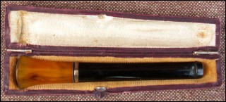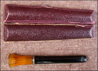 French cigarette holder in amber with gilt ring in its original case made during the 1900's. Good condition. 3 3/4" length.