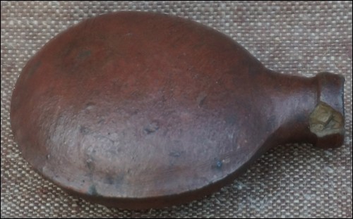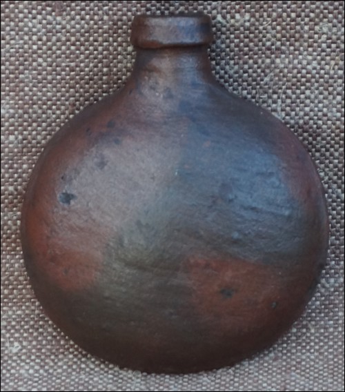 Tabatière à priser normande de Ger XIXème siècle. Appelée secouette, touine ou pétunier, elle est en grès au sel et permet garder le tabac à priser dans la poche. Bel état, une égrenure au col. Hauteur 6,8 cm.