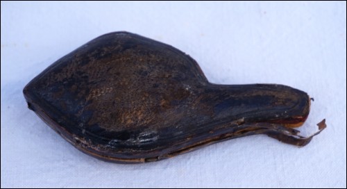 Fume cigarette en écume de mer à décor d'un cheval, dans son étui d'origine, vers 1880. Longueur 8.9cm, hauteur 3.8cm. Bel état, l'étui a un peu souffert.