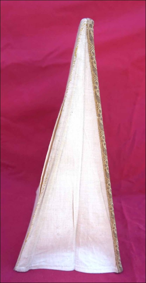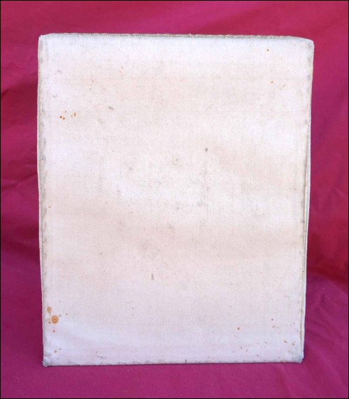 Bourse en brocard orné de galons dorés, pour le service de la messe , église Catholique et Romaine. Dimensions: 29 cm hauteur par 23.5 cm largeur. Bon état, petites usures et tâches.