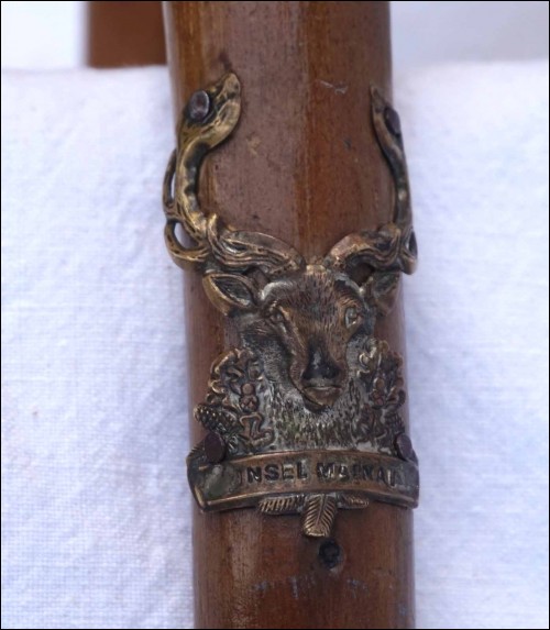 Canne de marche portant les insignes de l' Ile de Mainau, Constance et Meersburg, Lac de Constance, milieu XX° siècle. Hauteur 84.5 cm. Bel état.