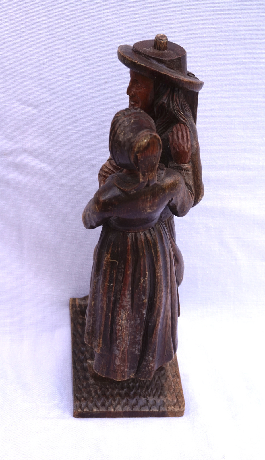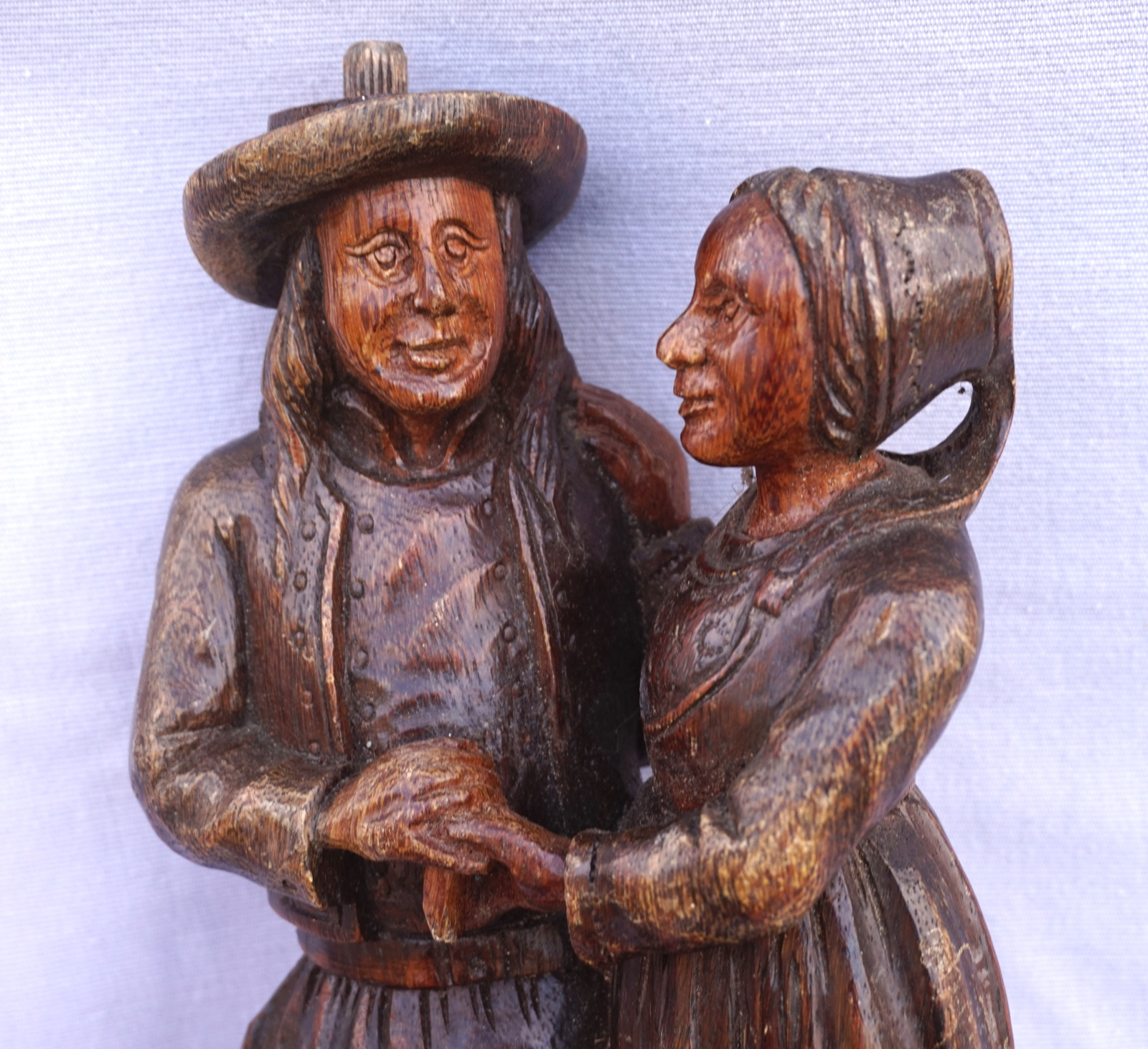 For our French-speaking friends Couple de breton en bois sculpté, vers 1960. Hauteur 33cm, largeur 14cm, profondeur 10.2cm. Très bel état.